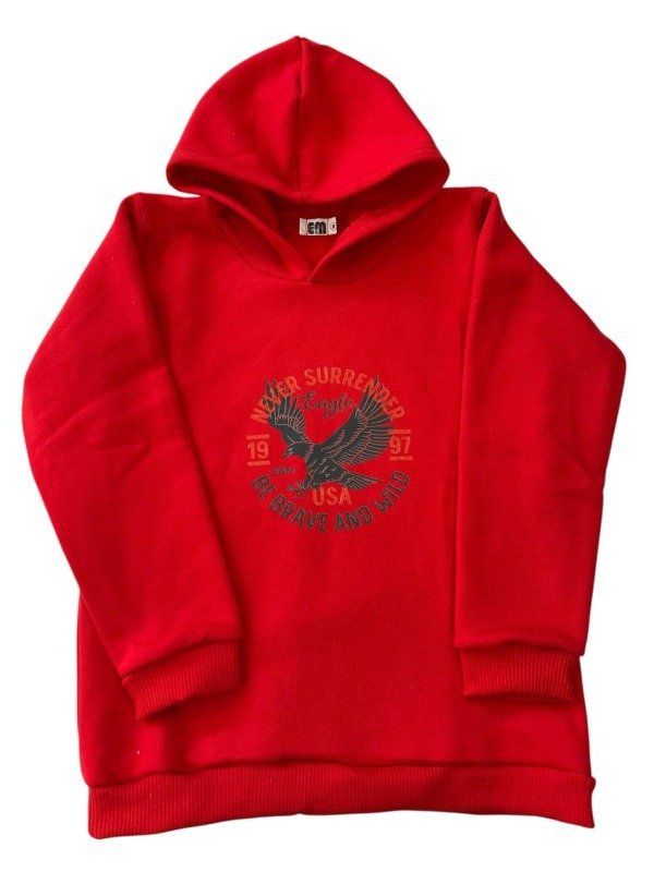 BUZO CON CAPUCHA FRISA INVISIBLE CON ESTAMPA